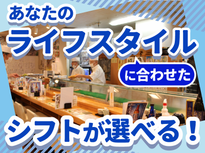 求めている人材 ╭━━━━━━━━━━━━━━━╮ ✤ホール経験等がない方も歓迎!✤ ╰━v━━━━━━━━━━━━━╯ ◆学生・主婦(夫)活躍中 ◆フリーターさん活躍中 「寿司屋のホールスタッフ経験を 活かしてブランク復帰したい」 「英語などの外国語を接客で活かしたい」 という方なども大歓迎です♪