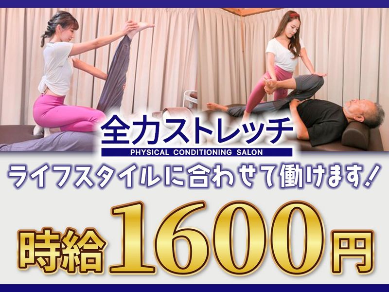 求めている人材 ⭐こんな方にオススメ⭐ ・「美」に関わる仕事がしたい方 ・「本格ストレッチ」に関心がある方 ・コミュニケーションを取るのが好きな方 ・夢や目標がある方 ・「ナイトワークから昼職へ転職したい」方 ・「シンママだけど安定収入と高収入の両方が欲しい」方 ・接客のプロとしてコミュニケーション力や気配りスキルを活かしたい方 ・夜間バイトを検討している方 ⭐異業種・異職種からの未経験スタート多数在籍⭐ こんな経験をしてきた方はすぐに経験を活かせますよ! ・ヨガ、ピラティスのインストラクター、パーソナルトレーナー、スポーツジム受付、ダンサーなど体を動かすお仕事 ・各種ナイトワーク(クラブ、ラウンジ、キャバクラ、バー、スナックなど)のフロアスタッフ、ホールスタッフ、カウンターレディ経験ある方 ・美容部員、アパレル販売員、コンビニ店員、飲食店店員、カラオケ店員などの接客のお仕事 ・未経験者歓迎 ・同業界の経験者歓迎 ・無資格OK ・接客業のブランクOK ・副業・WワークOK ・学歴不問 ・フリーター歓迎! ========== <スタッフインタビュー> ▶「全力ストレッチ」で働く魅力は?  ̄ ̄ ̄ ̄ ̄ ̄ ̄ ̄ ̄ ̄ ̄ ̄ ̄ ̄ ̄ ̄ ̄ ・業界内1の高給 ・夜のお仕事じゃなくても昼職でしっかり稼げます ・頑張りがお給料にしっかり反映される ・「元気をもらいに来たよ」「これからも体を任せたい」とお客様に言ってもらえる ・早くからキャリアアップができて自信がもてるようになる ・好きなものにお金を使える (洋服・鞄・コスメ・推し活・旅行など) ・自分の体のケアができるようになる ・シフト自由でプライベートも充実できる ・様々な人と出会えて人脈が広がる