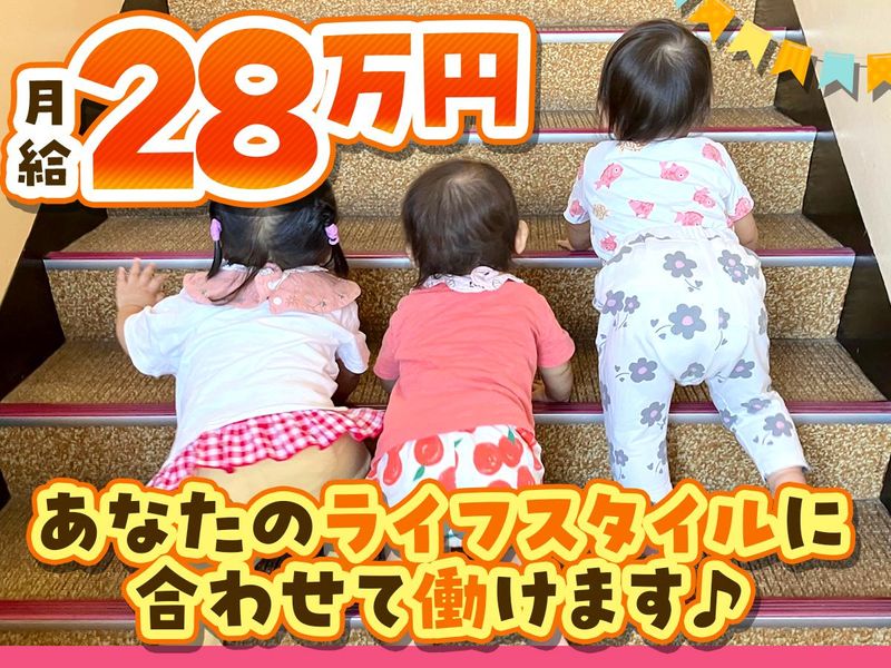 仕事内容 地域から愛されている保育園です! 春からの常勤保育士を募集中♪ …………………………………………………… 【仕事内容】 0~5歳児までの、 各クラスの担任をお願いいたします。 行事、制作に追われすぎることなく、 子どもたちと丁寧に向き合えます。 〈各クラス人数(目安)〉 ・乳児クラス(0歳):9名 ・乳児クラス(1歳):18名 ・乳児クラス(2歳):18名 ・幼児クラス(3~4歳):各18名 ・幼児クラス(5歳):19名 乳児・幼児クラスともに 基本的に1人で園児のお背ををすることはなく 2~3人でお世話をするのでご安心ください! 20~40代の方活躍中! 頼れる先輩が側に付いてくれるので 経験の浅い方、ブランクのある方もご安心を! 【アピールポイント】 ✅充実のワークライフバランス!  ̄ ̄ ̄ ̄ ̄ ̄ ̄ ̄ ̄ ̄ ̄ ̄ ̄ ̄ ̄ ̄ 週休2日制、年間休日は123日! GWや年末年始の長期休暇もあります! 勤務は1日7時間40分と短めで、 時間帯が選べるので、朝が苦手な方も お気軽にご相談ください◎ ✅ライフスタイルに合わせて働ける!  ̄ ̄ ̄ ̄ ̄ ̄ ̄ ̄ ̄ ̄ ̄ ̄ ̄ ̄ ̄ ̄ ̄ ̄ 育児・介護・看護休暇などがあり、 ライフステージの変化にも柔軟に対応◎ 50年の歴史がある法人だからこそ、 安心して長く働けます! ✅長く続けたくなる環境です!  ̄ ̄ ̄ ̄ ̄ ̄ ̄ ̄ ̄ ̄ ̄ ̄ ̄ ̄ ̄ 年1回、4,000~5,000円の昇給や、 年2回、計2.95ヶ月分の賞与支給あり (前年度実績) 一人ひとりの頑張りをしっかりと評価して、 モチベーションアップを目指しています。