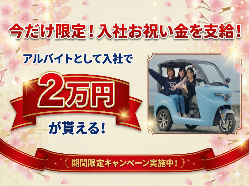 アピールポイント: ・仕事はシンプルで、すぐ覚えられます 受付・説明・返却対応が中心。難しい操作や専門知識は不要! ・観光客と話す、楽しい接客業務 鎌倉観光をする直前でワクワクしたお客様との会話は、仕事よりも会話の延長線上です ・20代が中心の若くてフレッシュな職場 大学生の在籍が多く、学校の授業とも両立しやすい職場です ・普通のアルバイトではできない体験 電動トゥクトゥク×観光という、少し珍しい現場で働けます ●働く環境について eMoBiは、年齢や立場に関係なく、フラットに話せる雰囲気があります。 社長や役員陣も26歳と非常にフレッシュな職場です。 ・最初は必ず先輩と一緒に対応 ・困ったことはすぐ相談できる ・新人を一人にしない体制 気を張りすぎず、自然体で働ける職場です! ●このアルバイトで得られること ・相手に合わせた自然な接客力 ・初対面の人とも会話できるコミュニケーション力 ・観光やサービスの現場を知る経験 ・就活や他の仕事でも使える実践的なスキル 「楽しかった」だけで終わらず、あとから役に立つ経験が残ります!! ●働くメンバーの声 「一つずつ教えてもらえるので、安心して始められました」 アルバイト自体が初めてで不安もありましたが、最初は先輩が横について説明してくれます。わからないこともその場ですぐ聞ける雰囲気で、 「まずはここまでで大丈夫だよ」と段階的に教えてもらえたのが印象的でした。 一人で任される前に必ずフォローがあるので、安心して続けられています。 (20代・大学3年生・女性) 「お客さんと一緒に楽しめるのが、この仕事の一番の魅力です」 お客様からおすすめスポットを聞かれたり、写真を撮ったり、 仕事というより、楽しい時間を一緒に過ごしている感覚があります。 毎日同じ作業の繰り返しではなく、 その日その日で空気が違うのも、この仕事ならではだと思います。 (20代・Wワーク・男性)