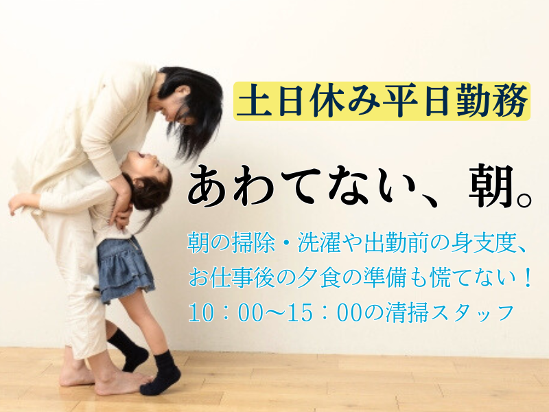 求めている人材 ◎高卒以上 ◎未経験者大歓迎! ◎主婦(夫)さん、 副業・Wワーク(週40時間以上働いている方のWワーク不可)、 フリーターさんも歓迎です! ◎扶養内勤務もOK!ご相談ください。 / 隙間時間を活かして働きたい! 土日は家族時間を楽しみたい! \ そんな思いを持った方も大歓迎♪ ◎久しぶりの社会復帰でブランクがある方、 家庭と両立して働ける職場を探していた方にもピッタリです。 【こんな方にもオススメです♪】 ▶掃除が好きな方 ▶もくもくと作業するのが好きな方 ▶ガッツリ働きたい方 ▶身体を動かすことが好きな方 ※業務上、日本語での「会話・読み書き」が必要です。 ※マニュアルや指示はすべて日本語のため、 日本語で日常会話ができる方(N1以上)を対象としています。 ※外国の方も活躍中ですが、 面接・研修・業務中のやりとりは日本語です。