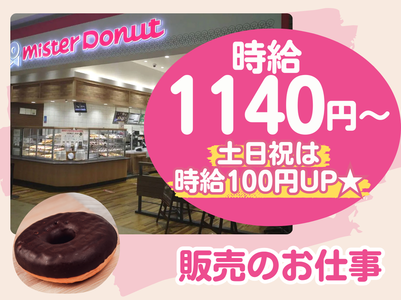 仕事内容 \ ✨接客・販売未経験の方も歓迎✨ / マニュアルあり! 先輩がイチから丁寧にお教えしますので 未経験の方も安心スタート◎ :::::⭐ この求人のポイント! ⭐:::::: ✅週3日~シフト相談OK! プライベート優先OK ✅土日祝は時給100円UP! ✅学生・主婦活躍中!扶養内勤務OK! ――――――――――――――― ✨ ドーナツ好きさん必見! ✨  ̄ ̄ ̄ ̄ ̄/ ̄ ̄ ̄ ̄ ̄ ̄ ̄ ̄ ̄ ◎休憩時にドーナツ支給あり! ◎従業員割引あり! 新作のドーナツもお得に 食べられちゃいます♪。・ 「ドーナツが好き」 「ミスドで働いてみたい」 という方にピッタリのオシゴト♪ ::::::::::::::::::::::::::::::::::::::::::::: ■ 仕事内容  ̄ ̄ ̄ ̄ ̄ ̄ ̄ ̄ 接客・販売業務をお任せします! 具体的には… *接客 *レジ *お客様が選んだドーナツの 袋詰め・箱詰め など ⏩将来役に立つスキルが身に着けられる! - 言葉づかいや接客マナーなどを 身に着けられます◎ 「就職活動に役に立った」という声も ありますよ◎