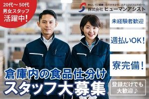 インフォメーション かんたん軽作業/企業主導型の託児所完備子育てママ在籍中!/20代~40代活躍中! 私たちヒューマンアシストは、大分市高城の 地において、人材派遣を主軸に職業紹介や アウトソーシング事業を展開。 さまざまなニーズに合わせた、きめ細やかな サービスを行っています。 工場内軽作業を始めご紹介可能な お仕事がたくさん 就業前~就業後もサポート体制が バツグンです。 ▼ヒューマンアシストのココがポイント▼ ◎勤務スタート日の調整OK 「すぐにでも働き始めたい。」 「来週から始めたい。」などのお仕事 開始日の調整が可能です。 ◎企業主導型保育園あり 大分市畑中と大分市玉沢に0歳~5歳 までのお子様をお預かりできる保育園が あります。子育て中の方も安心して 働けますよ 他にも長く安心して働いて頂ける仕組みが 沢山あるヒューマンアシストでお仕事 始めてみませんか! アピールポイント 未経験でも安心のシンプル作業 同じことを繰り返すシンプルな作業が 多く、専門的な知識も必要ないので、 安心して始めることができます。 【メリットたくさんのお仕事】 ●週払いOK(規定あり) ●寮完備(規定あり) ●企業主導型保育園あり ●別途交通費支給 臼杵駅からも車で約30分ぐらいの 通勤しやすい勤務地です わからないことや困ったことがあった際に 聞きやすい環境作りを心がけています。 お子さんの学校行事や、家族やご自身の急な 体調不良の際などには、お互いにフォロー しあえる雰囲気・環境作りをしています 集中してコツコツ、モクモク取り組める 作業ですのでコミュニケーションが少し 苦手な方でも問題なし! 【産休・育休等の取得実績あり】 ヒューマンアシストでは、派遣スタッフの 皆さんのライフイベントに合わせた キャリアサポートを行っております。 託児所との提携も実施し、主婦(夫)の 皆さんが安心して就業いただけるように また、産休・育休の取得はもちろん、 育児休業を終えての復帰サポートも推進! (同一企業様、復帰のご状況に合わせた別の お仕事紹介含め) 実績として、育休からの復帰就業や、 男性の育休取得実績多数あり! 地元大分で安心・安定したキャリアを 築くサポートは私たちヒューマンアシストに お任せください! 【キャリアサポートのご案内】 ヒューマンアシストでは、ご要望に応じた キャリアサポートを実施中 「未経験でも就業できるお仕事」はもちろん、 ・ゆくゆくは正社員になれる職場で頑張りたい ・事務スキルを上げて、専門性の高い職場に 活きたい そんなキャリアアップを目指す方、 是非ヒューマンアシストにご相談ください!