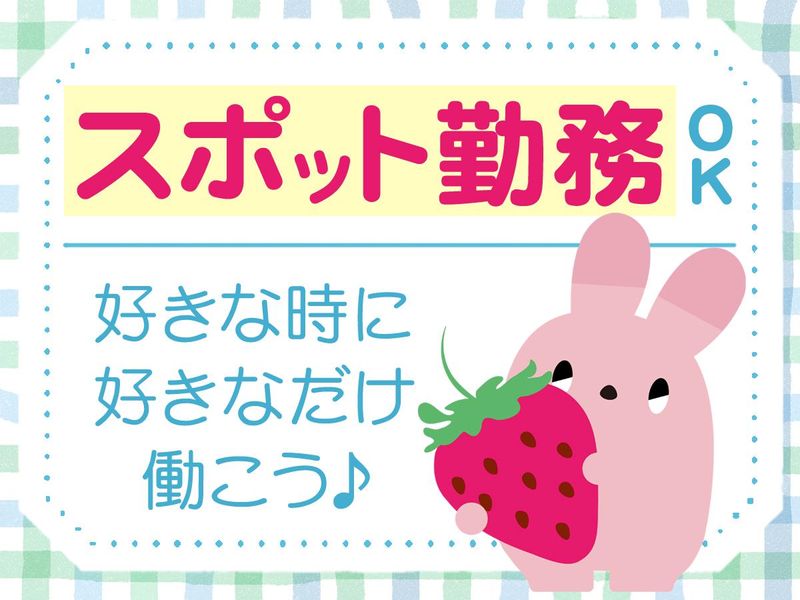 職場環境 ガッツリ派もサクッとお小遣い稼ぎ派も あなたの都合に合せて働けるので安心♪ 派遣で働いたことがなくても大歓迎◎ 例えば・・・ 就活の合間に働いている方 旅行のための資金稼ぎで働いている方 扶養内でサクッと働いている方など さまざまな方が活躍しています。
