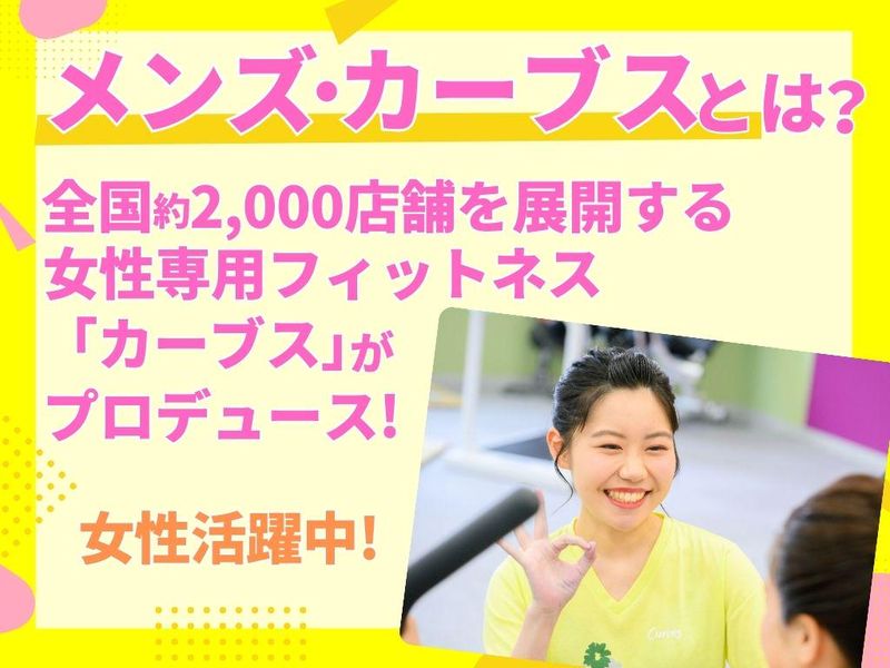仕事内容 【オープニングスタッフ大募集!!】 【誰かに喜ばれる仕事がしたい方に♪】 ✅全国2000店舗以上を展開する 女性専用フィットネス 「Curves」の男性バージョンの店舗 ✅女性スタッフ活躍中! 特別な知識・運動経験不問! ✅地元の方と楽しく触れ合いたい方歓迎 ✅元気な挨拶がスタッフとしての第一歩! ✅知識や仕事は研修にて学べるので安心! ✅施設内のマシン利用無料OK! ✅月給26万~/日祝休み/賞与・昇給あり ・・・――――――――――――――――― <メンズカーブスについて> 1回30分、いつでも好きな時間に、 無理なくトレーニングを行える、 女性専用フィットネスカーブス。 国内に約2000店舗を展開し、各地域で 多くの女性会員様に親しまれ続けています。 産官学協働の取組みも行っています。 東北大学や筑波大学等との共同研究を通じて 筋肉トレーニングがメタボやロコモ、 認知症の予防改善にも効果がある事が 科学的に実証されています。 また、地方自治体とも連携し、 予防医療事業の一環として正しい 運動習慣作り、介護予防の 促進にも貢献しています! そのカーブスの新業態として 誕生したのがメンズカーブスです。 「仕事が忙しくて運動する時間がない」 「最近体力の衰えを感じた」 そんな中高年の男性の方々を中心に、 気軽に・短時間で正しい運動習慣を 身につけていただき、豊かな生活を送る為の 健康作りをサポートをしていきます。 <コミュニケーション力活かせます> 例えば以前ジムなどのインストラクターを していた、他の業界で接客業をしていた など、ライフスタイルの変化で退職し、 もう1度社会復帰を考えている方、大歓迎! また例えば、できれば正社員として 働きたいけど家庭と両立もしたいという方。 そんな方にピッタリな環境かもしれません。 もちろん、丁寧な研修があるので、 インストラクターや接客が未経験でもOK。 プライベートも大切にしながら働けます。 自分の理想とする働き方を叶えたい、 という方は是非、1度お話しましょう! <スタッフの働きやすい環境づくりも!> 楽しみながら、長く安心して働き 続けられるように週休2日の日祝固定休み! ・・・――――――――――――――――― 【仕事内容】 店舗運営や接客を主にお任せします。 会員様の健康管理にマシンを使った トレーニングやストレッチのサポートを 通し、利用者様と深く関わり合えるお仕事。 まずはコミュニケーションを取り、 楽しくお話をするところからスタート! お仕事に慣れてきたら清掃やマシンの 消毒、シフト管理といった店舗運営や、 入会手続きなどの事務業務など、 徐々にできる仕事を増やしていきましょう。 <アイデアを活かせるお仕事もあり!> まずは丁寧な研修からスタート! 業務に関して必要な知識などは、ここで じっくりと身につけられるので、 異業界・異業種からの転職、 未経験の方も大歓迎です。 1人1人と向き合って声を掛けるなど、 利用者様が気持ちよく、安全に トレーニングを行えるようなサポートを 一緒に行っていきましょう。 「筋肉をつけたい」「お腹を引っ込めたい」 と通う若い男性や「健康でいたい」 「運動不足を解消したい」と運動に励む ミドル・シニアの方など当店にいらっしゃる 利用者様は、年齢も目的も様々。 全ての利用者様に「来てよかった!」と 思っていただけるような、お店づくりを 一緒に目指していければと思っています。