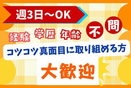 資格 日用品やCD・本などを探し、 所定の場所まで運ぶだけ! 運ぶ際はカートを利用する 簡単作業!なので、 経験不問 学歴不問 年齢不問 コツコツ真面目に取り組める方 *学生さん歓迎! *既婚者・主婦(夫)さん歓迎! *フリーターさん歓迎! *中高年やシニアのスタッフも活躍中! ◆未経験者歓迎 先輩の90%が未経験スタート! 工場や倉庫内作業の経験はなくてOK 物流の知識もなくてOK アルバイト・パートさんや 異業種からの転職も大歓迎!
