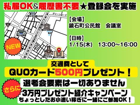 【保険制度】 雇用保険、労災保険、健康保険、厚生年金 待遇・福利厚生 【福利厚生】 ・社会保険完備(入社日から加入) ・正社員登用制度あり ・週払い制度あり ・交通費支給/ガソリン代支給(規定あり) ・有給休暇制度 ・制服貸与 ・食堂完備 ・駐車場あり ・友人紹介手当あり(3万円/規定あり) 【1月入社限定】つなぐ。手当(就業サポート支援金)最大5万円 ※採用枠の方限定 ※各種規定あり ■私服OK・履歴書不要の登録会■ 仕事内容の説明を中心とした案内です。 応募前に内容を確認できます。 ◎ 担当者とざっくばらんに話せます ◎ 仕事帰りの私服OK・手ぶらでOK ◎ 所要時間:約1時間(履歴書持参なら30~40分) ★ 参加特典:QUOカード500円分プレゼント! 【登録会日程】 1月15日(木)13:00~16:00 鏡石町公民館 会議室 1月23日(金)14:30~16:00 米沢市 中部コミュニティーセンター 第一研修室 1月26日(月)13:00~17:00 ビックパレット福島 小会議室 〒963-0115 福島県郡山市南2丁目52番地 <お友達紹介キャンペーンも実施中!> 紹介した方が1ヶ月続くと、 紹介者に現金3万円プレゼント! (年間6名まで紹介OK)