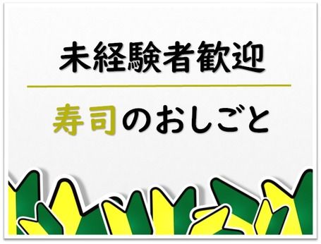 資格 経験・学歴不問 ・未経験者大歓迎です! ・寿司部門に関連した経験をお持ちの方も大歓迎です!