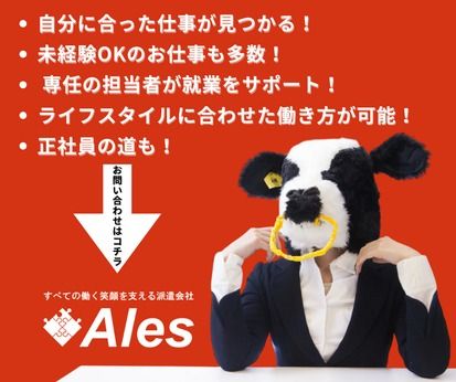 仕事内容 おつまみの袋詰め 【北区】選べる勤務時間・かんたん軽作業・おつまみの袋詰め・ ・主婦(夫)さん大活躍中!! 【お仕事内容】 (1) さきいかを机に広げて一握り程度をはかりに乗せる (2) 既定のグラムに調整する (3) 販売用の袋に入れる (4) 正面のベルトコンベアーに流す ※上記1~4の繰り返しでかんたん作業ですよ!! ・選べる時間帯で働こう 1, 9:00~17:30(実働7.5時間) 2, 14:30~20:00(実働5.67時間) 《イチオシポイント》 ・60代の女性が活躍中です ・外国の方も大活躍中ですよ! 先輩さんが丁寧に1から教えてくれます のでご安心ください ・長期案件のお仕事で安心して働きたい方にピッタリ!! まずは職場見学できますのでお気軽にご応募ください 「一度話を聞いてみたい!」でもOK! お気軽にご応募・お問い合わせください 迷った方もまずはご応募ください
