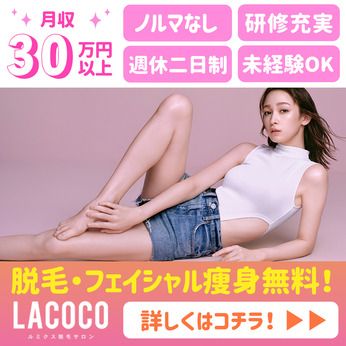 仕事内容 【お仕事詳細】 「バイト経験もゼロなんです…」でも全然OK! 完全未経験から正社員デビューしませんか♪ 難しいコト・面倒なコト一切なし! ノルマもなくてストレスフリー! 年収600万円だって夢じゃない! LadyBirdで、あなたの未来を変えちゃおう☆ .。.:*.。.:*.。.:*.。.:*.。.:*.。.:*.。.:*.。.:*.。.:* 《受付業務》 サロンの顔として、 お客様を最高の笑顔でお出迎えします! 《事務作業》 カウンセリング内容やお客様情報を入力して カルテを作成します。 決まったフォーマットがあるので PCが苦手でも大丈夫☆ 《接客業務》 「最近肌の調子が…」「もっとツルツルにしたい!」 など、お悩みをやさしくヒアリング。 お客様にぴったりの自社スキンケア用品や 化粧品・コスメをご案内します。 ノルマは一切ありませんのでご安心を◎ 《施術サポート》 最新美容機器を使用した施術サポートをお任せ! 《店舗のお片付け》 お客様に気持ちよく過ごしてもらえるよう、 サロンのオープン前&クローズ後に店内をお掃除! いつも使うマシンもしっかり整理整頓♪ 【一人ひとりにあった研修をご用意!】 入社後は... 研修センター(東京または大阪/2週間)で 機器の使い方や施術の仕方などを学びます。 店舗配属後は... OJTで先輩が優しくフォロー! あなたにあった育成方法で スキルアップをサポートします! 使用する脱毛器・化粧品は、 グループ会社で開発・製造~販売まで 行っています! お客様からの信頼も厚い 総合メーカー運営サロンで働きませんか! ================================ \研修の様子は下記のID検索からCHECK!/ LACOCO 研修室 Training Room (@lacoco_tr) ================================ 【社割でお得に「キレイ」を手に入れよう!】 \美容好きさん必見/ 全身脱毛・フェイシャルエステ・痩身施術が… なんと!"無料"で受けられます! さらに化粧品も社割でお得に購入可能です! 美容代の節約&自身のメンテナンスもできて 一石二鳥! 働きながら目指せ美BODY! 【プライベートの充実が"美"の秘訣?】 *週休2日制 *誕生日休暇あり *夏季・冬季に長期休暇あり *時差出勤OK *残業少なめ ワークライフバランス重視のあなたも 安心して働ける環境です! 社員の休日の過ごし方は... サウナでリフレッシュしたり 人気カフェや韓国グルメを食べに行ったり ... しっかり休める環境が、 社員の「美」を支えています! 【キャリアアップも目指せます!】 約1000名の女性社員が活躍している当社では 今まで沢山の女性管理職登用有! 未経験からでも意欲次第で 主任や店長にキャリアアップ可能! 家事・育児などと両立している子育てママ在籍中。 「手に職をつけたい」 「正社員で長く安定して働きたい」 そんな方!ぜひ弊社でその一歩を踏み出してみませんか?