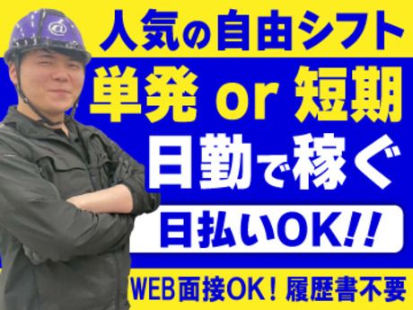 短期/単発OK!日数・曜日など自由!働きたいタイミングでOK!初回登録時2000円支給!日払いOK