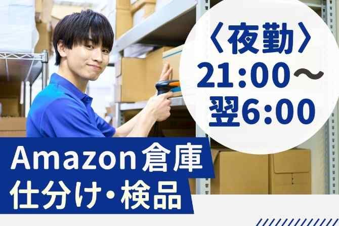 PRコメント \大手アマゾンの通販返品センター/ <稼げる夜勤!21:00〜翌6:00> (実働7.5h・休憩1.5h) アマゾンの返品センターで返品された商品を 検品したり、仕分けたりするお仕事です♪ 【このお仕事のメリット】 ●希望シフト制★ 週4日~OK!週5勤務も歓迎! 倉庫は365日稼働なので、 平日休みや土日休みも可能です★ 曜日固定も相談できます! ●残業なし! スタッフのほとんどが定時で上がっています ●週休2~3日♪ プライベートも大事に出来ます ●未経験大歓迎! お仕事のブランクある方も大歓迎! ●カンタンなモクモク作業! ●充実の待遇と快適な環境! ・社会保険完備(法定通り) ・車・バイク・自転車通勤OK! ・広い休憩室でしっかり休める! ・空調完備 ・鍵付きロッカーあり ・無料ウォーターサーバー有 ●事前の職場見学も可能です! 【仕事内容】 <お仕事内容> アマゾンの返品センターで 返品された商品を ●検品 数量、商品内容、返品理由、 商品のチェック。 ● 仕分け 廃棄する商品、 リユースする商品などに仕分け。 ★アマゾンのサービスを 支える大切なお仕事です!