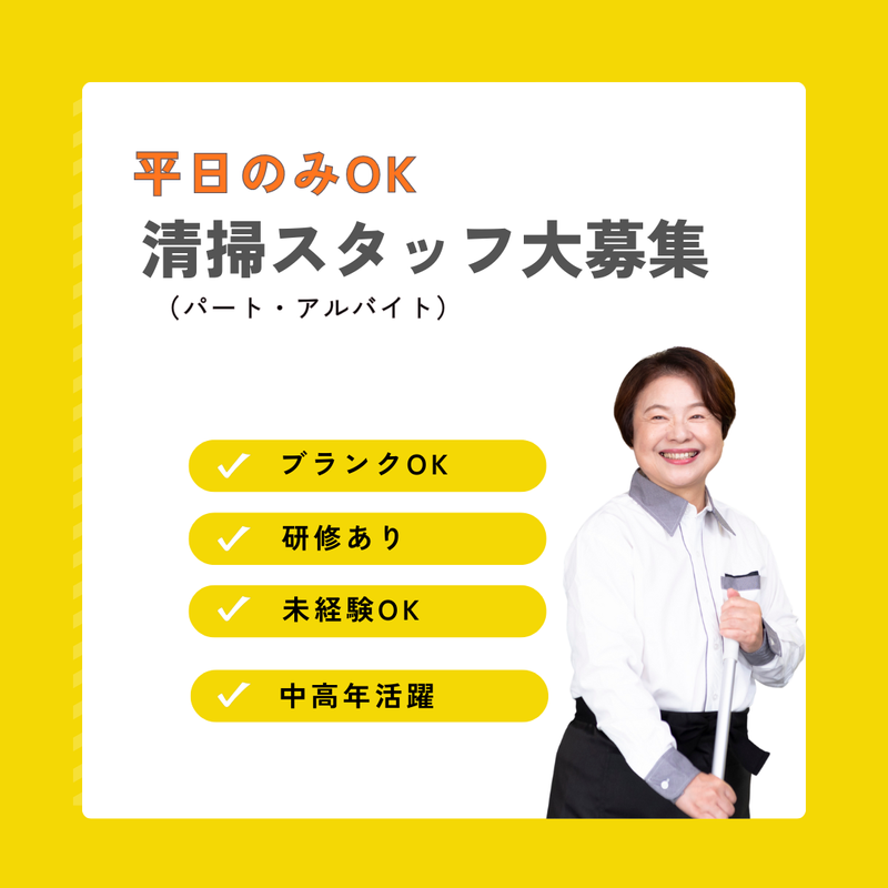 仕事内容 【職種名】病院の清掃 【勤務地】北陸中央病院(小矢部市) 【雇用形態】パート・アルバイト 【給与】時給1150円 【応募方法】このまま「応募する」からご応募ください 【仕事内容】 病院の清掃 ・床のモップ清掃 ・トイレ、洗面台の清掃 ・家庭で馴染みのある道具、洗剤のみを使用 ・専用カートでの運搬で力仕事なし ・屋内のもの作業で冷暖房完備 ・医療に関わる仕事はありません ・一人ずつ持ち場に分かれます。自分のペースでもくもく清掃作業に集中 ・新人用研修があります 【おススメポイント】 ・土日休みで、特別なスキル不要で未経験の主婦(夫)パートさん活躍中 ・人に感謝される仕事です ・適度に動くので運動不足解消にも ・社会保険完備。正社員登用制度有