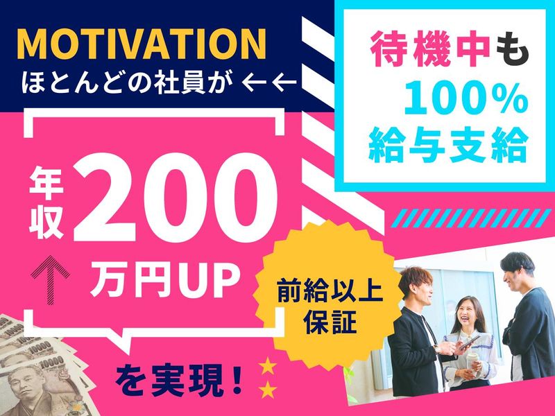 月給350,000円以上 給与詳細 基本給:月給 35万円 〜 固定残業代:なし 【一律手当】 全員に一律で支払われる通勤・皆勤・家族手当金額:なし 全員に一律で支払われるその他手当金額:なし \前職給与よりUPを保証します!/ 現在は100%の確率で前職より 高い給与を支給しております。 もっと満足できる環境で スキルや経験を活かせる大チャンス♪ ※経験・能力を考慮の上、決定します。 ※評価基準も見える化しています。 \年に1回”表彰”制度も設けています/ 案件先で成果を上げた社員や スキルUPに成功した社員、 勤続年数の節目を迎えた社員などへ 賞金を支給しています☆彡 【手当】 ・時間外手当(100%支給) ・役職手当 【昇給】 年2回(4月、10月) 【賞与】 年1回(12月) 【給与例】 給与例 ■年収720万円/経験7年目(月給60万円+諸手当+賞与※年収200万円UP) ■年収550万円/経験3年目(月給45万円+諸手当+賞与※年収100万円UP) ■年収430万円/経験1年目(月給32万円+諸手当+賞与※年収30万円UP)