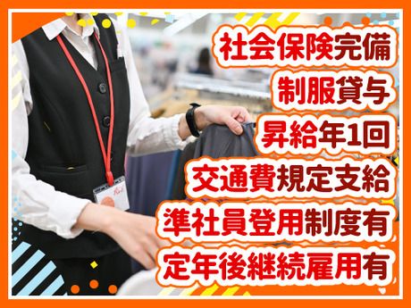 職場環境 【従業員構成】 20代~30代のフリーターさんも活躍中です♪ 子育てママも在籍中で、今後ライフスタイルが 変化しても長く続けられます◎ 店次長や店長へのステップアップも可能! 社員登用制度もあり、キャリアアップを目指せます★ 【職場の雰囲気】 初心者活躍中 決められた時間できっちり 知識、経験不要