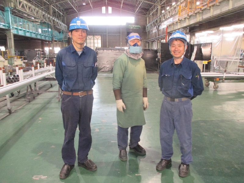 職場環境 「全国軽金属溶接技術競技会」で 入賞を果たす先輩もいるほど、 技術的なレベルが高い職場です。 職人の世界ではありますが、 面倒見のいい人ばかりで、 「背中を見て覚えろ」 なんて言う人はいません。 みんなのサポートを受けながら 技術を身につけてください。