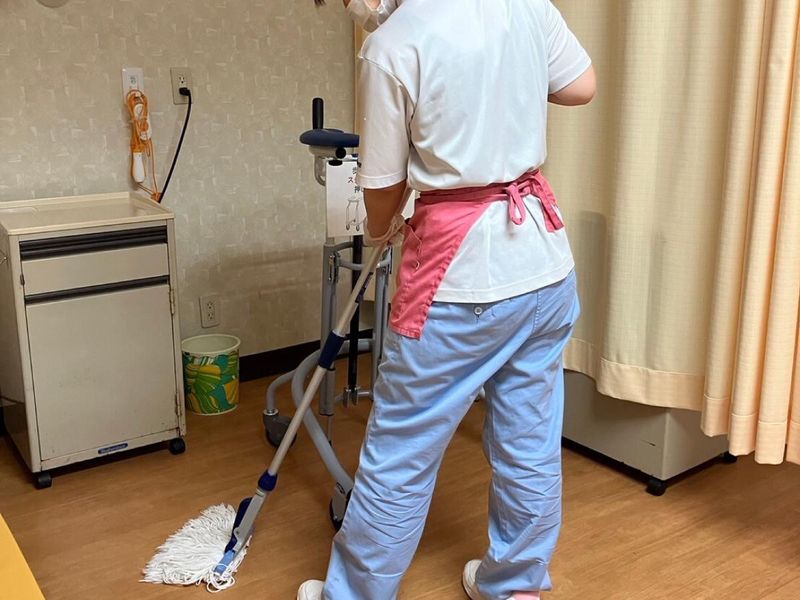 仕事内容 8時30分~15時30分(6時間) 病室内の床面、洗面台清掃。トイレ清掃。その他事務所床面清掃、ゴミ取り等