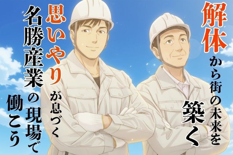 【仕事内容】 ⭐ガッツリ稼げる建築現場での解体作業!⭐ \\電話一本で即応募!履歴書不要で即面接!// 入社2か月で、月給28万円を達成したスタッフもいます! 作業手袋・作業着・道具などは支給があるので、気軽にご応募ください! ⏩️具体的な仕事内容 建設現場での解体作業をお任せします。 ・内装解体・内装バラシ ・リフォームに伴う中抜き工事 など 【ココで働くおすすめポイント】 ■履歴書不要&即面接OK ■日払い・週払いありで急な出費にも ■日給12,000円~でしっかり稼げる ================= ✅安全・仲間・自分を大事にできる ================= 名勝産業は、「思いやり」を何よりも大切にしています✨✨ それはスローガンではなく、毎日の現場で実践されている行動指針です! 「安心して働ける環境」「助け合える仲間」「無理をさせない社風」 この3つの思いやりが、会社のすべてを支えています⭕️ 安全第一の現場づくりと、互いを気遣う温かな人間関係✨ 無理をせず、自分のペースで働ける環境が整っています。 ================ ✅稼げて学べる、温かい職場です ================ 未経験でも資格取得支援や教育制度で着実に成長できます! 日給12,000円~+各種手当ありで、随時昇給あり✨ 日払いも対応で、稼ぎながら安心して働ける環境です。 助け合いの文化が根付いた温かい職場で、社会のために力を発揮できます。 ======== ✅完全個室寮あり ======== テレビ・冷暖房・FreeWi-fi完備で快適な生活環境⭕️ 駅チカ&スーパー近くで便利、即入寮も可能です⭐ 入寮者は日払い5,000円も利用でき、安心して新生活をスタートできます! 【求人ID-MIS】