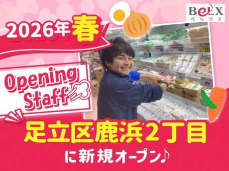 仕事内容 **モクモク・コツコツ・シンプルワーク**週1日&3h~シフトの融通ばっちり!扶養内でも働けます♪ 品出しを担う部門(通称:グロサリー部門)! 《商品を》 ▼台車で運ぶ ▼売り場に並べる …だけ☆ 調味料やお菓子等がメインなので、 「重たいもの」「力仕事」はありません! 指定の場所に・キレイに並べる作業は、気持ちが良い♪ お客様も気持ちよくお買い物できるよう、 商品棚のお掃除等もお願いします◎ ●経験問わず活躍できる環境! #【安心ポイント1】 電子マニュアルあり! #【安心ポイント2】 初めての方でも出来る、簡単な軽作業からお任せ! #【安心ポイント3】 正社員や先輩スタッフがしっかりとサポート! 教育&フォロー体制がバッチリ整っているので、 どなたでも安心してチャレンジできますよ♪ ●スーパーベルクスについて 昔ながらの八百屋さん、お肉屋さん、 お魚屋さん、お惣菜屋さんを一つに集めたような 地元密着型の食品スーパーマーケット! 『思いやりの心』を大切にしており、 スタッフ一人ひとりが心地よく あたたかな気持ちで働ける環境です♪ HPも是非ご覧ください! https://www.baitoru.com/op477685/ 【既存店、先輩スタッフの声《10代/男性》】 定番商品から新商品まで売り場に揃い、 綺麗に&ズラッと並べられた後は気持ちが良い♪ お菓子の新作チェックは 働く楽しみの一つだったりします(笑)。 また、お客様が商品を手に取ってくれるところを 見る機会も多く、そんな時には嬉しくなります! テスト期間のお休み等も考慮してもらえて、 学校ともうまく両立できています。 << 店舗・アクセス詳細 >> ・西新井大師西駅よりバス約6分 →「鹿浜」バス停下車~徒歩5分 ・西新井駅より(赤27)バス約16分 ・赤羽駅東口より(赤26、赤26-2、赤27)バス約14分 ・王子駅より(王49、王30)バス約16分 ・梅島駅より(王49)バス約20分 →「鹿浜橋」バス停下車~徒歩4分 ●鹿浜西小学校の跡地です。 ●環七・都道107号交差点「鹿浜」信号から240m 徒歩約3分 ●足立区立島糀屋公園から140m 徒歩約2分
