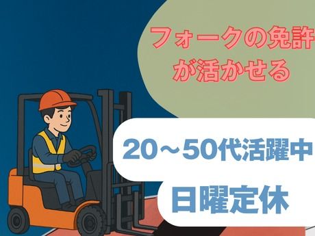 資格 【必須スキル】 フォークリフト運転免許 【歓迎スキル】リーチフォーク経験者 *20代・30代・40代・50代以上の男女活躍中 *若手~中高年スタッフまで幅広い世代活躍中 *フォークリフト経験活かせます