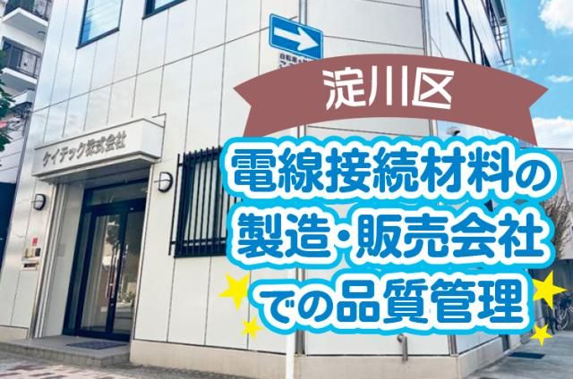 大阪市淀川区/経験者採用/電線接続材料の製造・販売会社での品質管理/男性活躍中/正社員 1980年設立の『ケイテック株式会社』は、 電線接続材料の製造・販売を行う企業です。 国内外の有力メーカー品を販売する当社で、 【品質管理】業務をお任せします。 応募にあたっては、 プラスチック材料の知識をお持ちで 電気・機械メーカーなどでの品質管理の経験者、 普通免許を保有している方を希望します。 業務上、Excel(表作成、表計算程度)、 Word(文書作成程度)、PowerPoint(プレゼン資料作成)の 基本的なパソコンスキルが必要です。 働きやすい職場環境で 社員の定着率の高さが自慢です。 あなたも一緒に腰を据えて頑張りませんか?