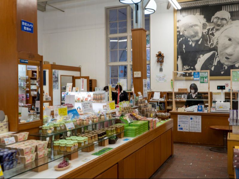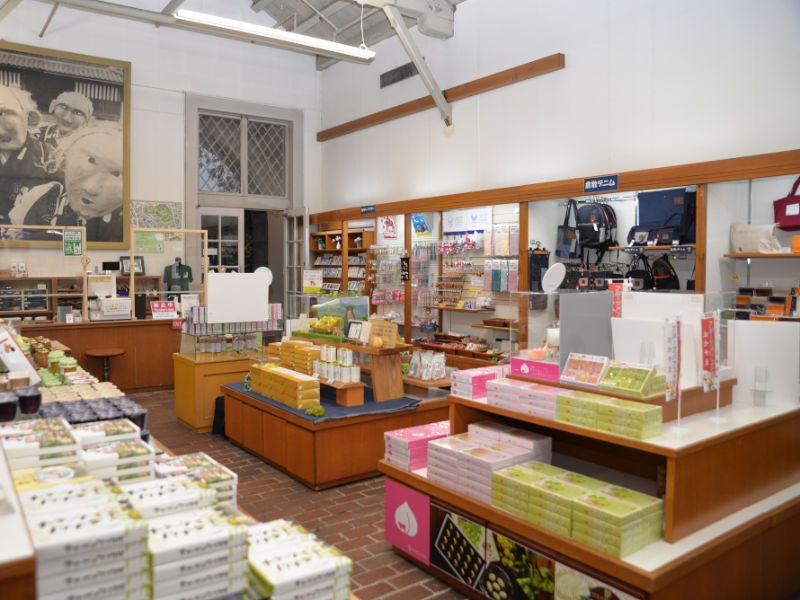 倉敷アイビースクエア内の売店でお土産品の販売。