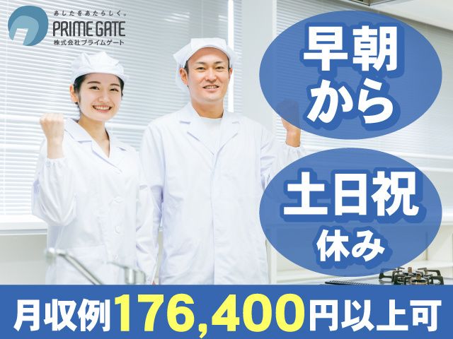 仕事内容 早朝6:40からの勤務! 夕方にゆっくりしたい方へおすすめ! 【注目ポイント】 ・土日祝休み ・未経験OK ・男性活躍中 ・即日勤務OK 食品工場で冷凍ハンバーグの製造に関するお仕事です。 お任せするのは、ハンバーグ製造の前処理工程です。 具体的に以下の作業をお願いします。 ・材料の肉を箱から出して棚に並べる ・肉のカットなどの処理や機械への充填作業 ・機械に入れたひき肉がでてきたら、それをバットへ入れて積む作業(バットの重さは12.3kg) ・台車でひき肉の運搬 ・ブレンドした肉を機械へ投入しパン粉などと混ぜ合わせる作業 機械へタネを投入すると、それ以降は成形・包装・真空・冷凍まで自動で機械が行ってくれます。 即日勤務OK! 作業着(衛生服)は無料でお貸しします。 職場見学も可能です! どうぞお気軽にお問合せください。 【プライムゲートで働くメリット】 ・担当者に相談しやすい関係作り 「何かあったら担当者に連絡してね」と言っても、連絡しづらいですよね。 当社の営業担当は、スタッフさんが相談しやすい関係を構築できるよう心掛けています! 職場での状況確認はもちろん、世間話なども! 気軽にお話ししています。 ・「働きやすさ」を最優先! 「仕事の内容は気になるけれど、お子さんを送り出してからだと出勤時間が合わない」 という場合はぜひご相談ください! 当社スタッフが勤務時間や条件などを勤務先と交渉します。 働き方に合わせてお仕事を紹介することもできますので、 「わがままかな」と思わずにぜひご相談ください。 ・担当スタッフがお仕事探しやスキルアップをサポート! お仕事情報はもちろん、スキルアップなどについてもご相談ください! ライフスタイルの変化や、働き方、持っている資格を活かせるお仕事など、 ご希望に合わせてお仕事の紹介をしております。 ・有休消化率73%、勤続年数平均2年6ヶ月、契約終了後の再就職率38.67%の実績 契約中も契約終了後も、ライフスタイルや経験に合わせて快適に働ける環境をバックアップします! 気になることやちょっとした質問も、ぜひお気軽にお問い合わせください。