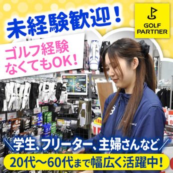 仕事内容 ◆商品のご案内・販売などの接客をお任せ!◆ / ノルマなし!! 接客を楽しめる職場環境♪ \ 【お仕事内容】 まずは、 「いらっしゃいませ」という元気な挨拶 ↓ 商品を見ているお客様への声掛け ↓ レジでのお会計 ↓ 感謝の気持ちを込めて 元気に「ありがとうございました!」 お客様の"笑顔"や"感謝"を 最前線で体験できる楽しさがあります♪ ◆店舗作りの楽しさを感じられる!◆ 新商品の入荷、商品の配置など、 お客様に見てもらうための工夫を 考えるのもとても楽しい時間です! 「接客業のアルバイトをしていました」 「未経験だけど人と話すのが好き」 「自分の意見も取り入れながら店舗作りをしたい」 こんな方にピッタリの職場です♪ ◆接客の中で気付く”成長”◆ 常連のお客様と話すお決まりの話題、 ゴルフ初心者の方向けのご案内など お客様と会話をしていくうちに ”接客の上達”を感じることができます◎ 自信が付いてくると仕事が楽しくなってきます! 是非、私たちと一緒に 1日の充実感を感じて欲しいです! ◆スタッフに大好評の社割◆ \ゼビオグループの商品は割引に/ ◇ダイエットは形から入りたい派 →ウェアやトレーニング用品 ◇家族の習い事や部活の用品 →野球、サッカー、卓球、バスケ、ヨガetc... ◇運動会用のシューズなど季節ごとのイベント →ついつい張り切って新調したくなる ゴルフ用品以外でも、 身の回りで役立つアイテムを安くGet☆ ◆「全てのゴルファーにとって唯一の存在を目指して」◆ 店舗数・中古クラブ販売本数で世界一! 中古ゴルフクラブのマーケットにおいて トップシェアを握るゴルフパートナー ゴルフ練習場事業・ゴルフスクールの開設 ゴルフ場の予約・Eコマースの運営・海外展開事業など、 快適なゴルフライフ実現を目指します!