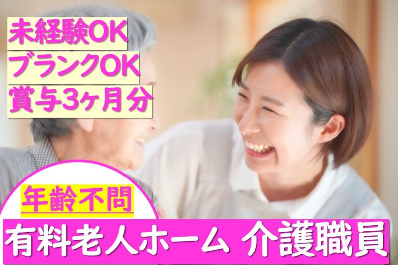 【アピールポイント】 住宅型有料老人ホームにて介護職員を募集します! ■賞与3ヶ月分 ■未経験OK! ■年齢不問! ■ブランク可