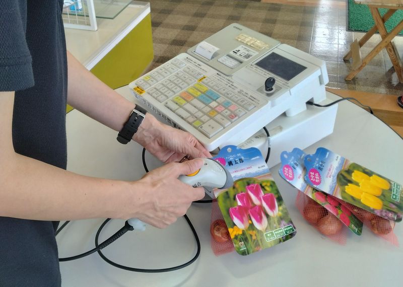2026チューリップフェアでの球根販売のレジスタッフ