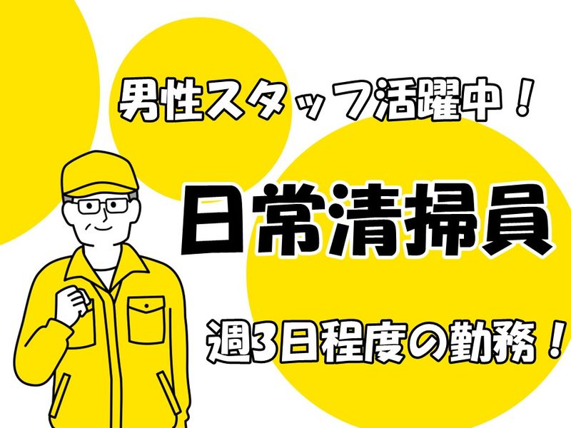 仕事内容 男性スタッフ活躍中!週3日◆年齢・経験は不問! 過ごしやすさを守る!未経験ok◆シンプルな作業だけ 「まだまだ働きたいけど、体に無理はしたくない」 そんな方にちょうどいいお仕事です。 「ただ掃除するだけじゃない」 “頼られるポジション”として活躍できるのもポイントです。 勤務は週3日程度。 無理なく働きながら、 生活リズムも整えやすい環境です。 男性スタッフが活躍中。 お久しぶりのお仕事復帰や、 定年後のお仕事をお探しの方も大歓迎です。 落ち着いた環境で、無理なく長く。 地域の施設を支える仕事、はじめてみませんか? 公共施設の 簡単な清掃をお願いします! ■拭き掃き ■掃除機掛け ■ごみ回収 ■メーター検針 ■ボイラーの管理 現在は男性スタッフが活躍中です。 家事の延長で出来る程度の 作業しかお任せしないため、 未経験者さんも大歓迎です! 特別な掃除用具もありません。 モクモクとお掃除できます。 アピールポイント ★接客なし ★シンプル作業 ★週3日程度 ★男性スタッフ活躍中