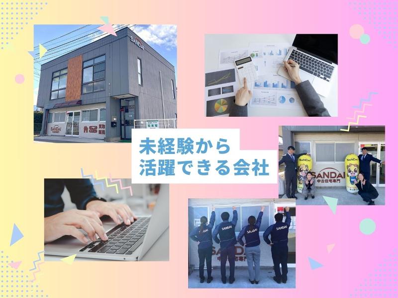 アピールポイント: SDGsの広がりとともに、空き家などの中古住宅活用が注目されている中、家の個性を活かしたリフォームを施し、新たな魅力を与える⋯そんなやりがいのある仕事です。 【反響営業100%!】 飛び込み営業はしません。 チラシやホームページ等から、お問合せいただいたお客様への案内のみです。 【個人ノルマなし!】 サンダイの営業課は個人プレーではなく、チームプレーです! 目標は全員で共有し、達成を目指しています。 一人で黙々と仕事をするよりも、仲間と一緒に達成を目指す方が頑張れる!という方はぜひご応募ください。 【働きやすい環境づくり】 社内会議は年に2回!他部署との連絡はグループウェアを活用! 業務マニュアルやチェックリストは、使いやすさ重視でタイムリーに更新! 無駄を省きつつ、最大限のパフォーマンスを発揮できるように常に改善しています。 まだまだ会社も成長段階ですので、社員それぞれの意見を聞きながら最適解を見つけています。