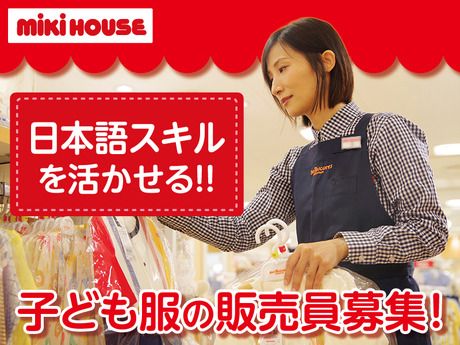 仕事内容 ・:*日本語力を活かすチャンス!*:・ 接客・販売、商品ディスプレイや品出し等 ※日本語と中国語の両方を使用いただきます。 こちらからお声掛けして会話の中から お客様が求めているものを探しだし、 ご提案からお会計、お見送りまで 一連の接客業務をお任せします! ノルマはありません! のびのび仕事ができる環境がお客様に 喜ばれるクオリティの高い接客に繋がっています。 ==・==・==・==・==・==・= 未経験から始めたい方もピッタリ! ==・==・==・==・==・==・= ミキハウスではブランクがある方や 販売経験がない方も安心して始められる 研修制度をご用意。 同時期に入社したスタッフが集まり 一緒に研修を行います。 「他の人はどんな感じで仕事してるの?」 「今こんなことで悩んでて…」 「接客でこんな工夫をしていて」 など、素朴な疑問から情報共有まで 同期と幅広く話せる機会でもあるので これからの仕事への安心にも繋がります。 ==・==・==・==・==・==・= miki HOUSEは中国にも店舗あり! ==・==・==・==・==・==・= CHINA WORLD MALL Beijing、 SHIN KONG PLACE CHONGQING、 Shanghai IFC Mall MIKIHOUSE flagship store など中国内に70店舗を拡大中。 ==・==・==・==・==・==・= スタッフ同士 より良い接客を目指して ==・==・==・==・==・==・= ミキハウスが扱う商品はクオリティが高く 「Tシャツ1枚でこの値段!?」と 驚かれるお客様もいらっしゃいます。 スタッフ同士で商品のおすすめポイントを 共有するなど常に勉強をしながら知識を たくわえていきます。 お客様の「なぜ?」にきちんと答えられる 知識を身につけることがワンランク上の 接客とお客様の信頼・安心へ繋がります。 ・:*日本語を学びたい留学生が活躍中!*:・ ミキハウスは中国にいた時に 親戚から頼まれて買い物に行ったことが あったのでブランドは知っていました! 私は日本に来てから レジのアルバイトをしていたのですが もっと日本語を学びたいと思い、 ミキハウスに応募しました。 今ではお客様と一緒に商品を選んだり、 スタッフのみんなとフェアを考えたりするのが楽しいです! ・:*店長からの一言*:・ ミキハウス ホットビスケッツ アカチャンホンポ ららぽーと豊洲店は、 土日は首都圏の遠方からご来店されるお客様も多く、 平日はお近くにお住まいの方はもちろん 海外からのお客様も多いお店なので、 語学力を活かして活躍していただけます! レジ業務がなく、オンライン・対面の研修で フォローもさせていただきますので、 ベビー・子ども服の販売が未経験の方も、 安心してスタートしていただけますよ!