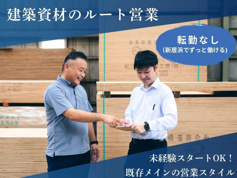 仕事内容 未経験転職を考えている方におススメのPOINT3つをご紹介! 【1】東予エリア中心とした営業がメイン 【2】既存のお客様が中心なので、じっくり仕事を覚えられます 【3】未経験可!学歴不問! ハウスメーカーや地場の建設会社様などを主とした 建築資材の受発注や納品業務、荷受けや配車が主な業務です。 営業窓口としてのお客様対応がメインとなります。 経験年数に応じて担当数が少しずつ増えていきます。 ―――――――――――――――――― 【1日の流れ】 08:00~ 在庫商品の発注業務 09:00~ 入荷商品の確認、配送予定チェック 12:00~ お昼休憩 13:00~ 販売先の事務所や現場訪問(納期や場所の確認など) 16:00~ 見積、発注などの事務処理 17:00~ 退社 ―――――――――――――――――― 【当社について】 建築資材の専門商社として、 大手ハウスメーカーや地元建築業者様と 安定した取引を行っています。 家が着工してから完成するまでって、 テクノロジーと職人さんの技術が融合する世界です。 とても面白いですし、家が建つのは圧巻です。 若いスタッフが多い(平均年齢34歳)ので賑やかな会社です。 一緒に地域の家づくりに貢献しましょう。 ―――――――――――――――――― 【アピールポイント】 ・賞与年2回 ・週休二日制(年間休日120日) ・各種手当充実 ・経験不問 ・退職金制度あり ・転勤なし 未経験入社の先輩がたくさん活躍中! 入社後の教育体制も万全です。