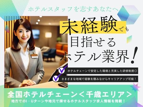仕事内容 全国チェーンホテルで働く!ホテル業界未経験スタート可能★異業種からの転職者も多く働きやすい♪ \未経験でも安心の理由/ ☆充実の研修制度でイチから学べる! ☆先輩のほとんどが未経験スタート! ☆チームで協力するから心強い! ☆分からないことはスグ聞ける環境! JR千歳駅スグ!全国チェーンホテルで 正社員デビューしませんか? あなたにお願いしたいのは、お客様を 笑顔でお迎えするホテルの”顔”! まずは簡単な業務からスタートなので ホテルのお仕事が初めてでも安心です。 【 具体的なお仕事内容 】 ●笑顔でのチェックイン・アウト対応 ●予約受付や電話・メールでの問合せ対応 ●周辺の観光やグルメスポットのご案内 ●簡単なデータ入力などの事務作業など 【 こんなあなたにピッタリ! 】 〇人と話すこと、喜ばせることが好き 〇新しいことにチャレンジしてみたい 〇チームワークを大切にできる 〇安定した会社で正社員として働きたい 【 将来のキャリアも描ける! 】 まずはフロント業務をマスター! その後、希望や適性に応じて 後輩の育成やイベント企画、ホテルの 運営などへステップアップも可能です。 あなたの「やってみたい」を応援します! - 【全国展開のビジネスホテルチェーンで働く魅力とは?】 全国展開のビジネスホテルチェーンで働くことで、 安定した環境でスキルを磨きながらキャリアアップを目指せます。 充実した研修制度が整っており、 未経験からでも安心して始められるのが魅力。 全国各地で勤務のチャンスがあり、 地域の特色を感じながら さまざまな経験を積むことができます。 また、社員割引や福利厚生が充実しており、 ライフスタイルに合わせた働き方が可能。 - 女性が働きやすい!管理職登用や産休・育休充実の魅力です 全国展開のホテルエリアワングループでは、 女性管理職の登用実績が豊富で、キャリアアップが目指せます。 産休・育休制度が充実しており、 復職後も柔軟な働き方が可能。 子育てと仕事を両立しながら、 安定した環境で長く働けるのが魅力です。 女性が安心して活躍できる職場で、 新しいキャリアをスタートしませんか?