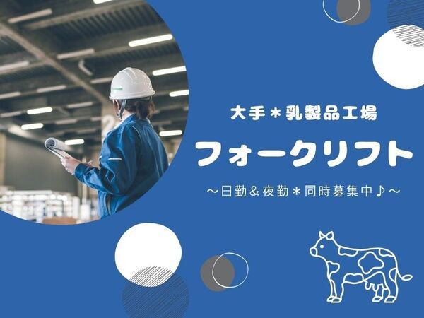 ≫≫月収37万可能≪≪ 乳製品工場のフォークリフト|車・バイク通勤OK♪|日払い可◎