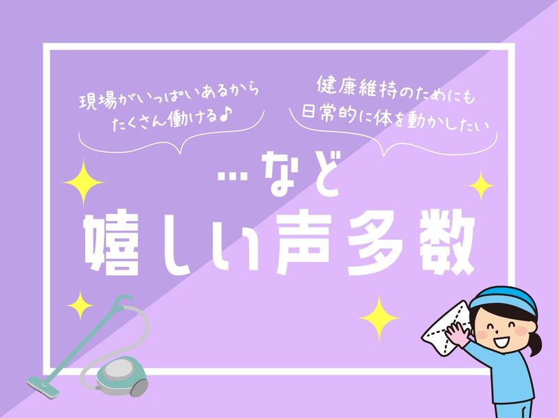 仕事内容 ―――――――――――――――――・。☆ ✅週2日~・1日3時間からOK (朝の時間を有効活用!) ✅程よい活動量&ルーティン作業 ✅普段のお掃除の延長だから未経験でも安心 ☆。・――――――――――――――――― < お仕事内容 > 商業施設内のお掃除をお願いします。 使うのはモップやぞうきんなど身近な道具だけなので安心♪ ▼仕事内容 ✅段ボール回収および整理 ✅エスカレーターの拭き掃除 ✅フロアのモップがけ ✅ガラス拭き など 短時間なので適度な運動にもなる仕事です 決まったエリアのルーティン作業を 自分のペースでこなして終了です。 < 未経験から始める「生涯現役」 > 「家で座っているより、社会と繋がっていた い」そんな思いに応える、程よい活動量の ワークスタイル。 ブランクがある方でも安心してスタートしていただけます。 ▼ホームページ https://kyoei-tatemono-kanri.com/