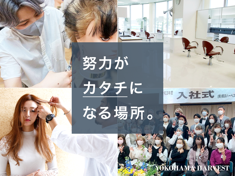仕事内容 努力がカタチになる。 最短1年でデビュー可能な安定環境◎ 【こんな事業をしています】  ̄ ̄ ̄ ̄ ̄ ̄ ̄ ̄ ̄ ̄ ̄ ̄ ̄ 横浜エリアを中心に 美容室を運営している当社。 お客様一人ひとりの“なりたい”に しっかりと応えるため、 カット・カラーなどの施術はもちろん 接客や空間作りにもこだわっています。 講習制度や海外研修、 奨学金返済補助制度など、 美容師としてのキャリア形成を 支援する制度も充実しています。 ………………………………………………… 【お任せするのは】美容師 まずはアシスタント業務からスタート! お客様のご案内、シャンプー・ブロー、 受付・レジ対応、店内清掃などを通じて サロン業務の流れを覚えていきましょう。 慣れてきたらカットやカラーなどの 施術にも少しずつ挑戦していきます。 アイリストも兼務の場合はアイ施術も お任せしていきます。 教育トレーナーが体系化された マニュアルに沿って指導を行うため、 安心して成長できる環境です。 あなたのペースに合わせて、 美容師としての第一歩を踏み出せます! 《1日の流れ》 開店準備 |出勤 |店内清掃 |朝礼 営業中 |シャンプー |受付 |店内清掃 |お店のPR活動 閉店後 |トレーニング |片付け ………………………………………………… 【勤務地】 全店舗内のいずれかに配属します (全て神奈川県内/希望考慮) ▼詳細はこちらをご確認ください https://y-harvest.co.jp/salon.html ………………………………………………… |◤ 当社の魅力・職場環境 ◢|  ̄ ̄ ̄ ̄ ̄ ̄ ̄ ̄ ̄ ̄ ̄ ̄ ̄ 地元出身者だけでなく、 地方から上京したスタッフも多く活躍中。 桜木町エリアに自社寮を複数完備しており、 一人暮らしを始める方も安心です。 予約状況によって異なりますが、 深夜勤務はありません! プライベートとのバランスを取りながら、 長く安定して働ける環境が整っています。 << 地方からの挑戦も応援 >> ✨桜木町エリアに単身寮完備 (月3.4万円~)✨ 実際に九州から上京し、 現在活躍している先輩もいます。 \\ 先輩インタビュー //  ̄ ̄ ̄ ̄ ̄V ̄ ̄ ̄ ̄ ̄ ̄ 「地元(福岡)で就職しましたが、 もっと技術を磨きたいと思い 上京しました。 寮があったので不安なくスタートでき、 今はスタイリストとして 指名も増えています。」 (入社3年目・九州出身) 地方出身者も多く、 同じ境遇の仲間がいる環境です。 ◇ ◇ ◇ 当社が運営する職業訓練校では、 「認定職業訓練校 優秀事業所」として 平成19年1月に神奈川県知事賞を、 平成19年10月に厚生労働大臣賞を受賞。 「再来させる技術と接客」をテーマにした 実践的なカリキュラムを実施し、 最短1年でのスタイリストデビューも 可能にしています。 コンクールや講習会への参加も 積極的にサポートしており、 入賞実績のある先輩も多数活躍中です。 |◤ スタッフインタビュー ◢|  ̄ ̄ ̄ ̄ ̄ ̄ ̄ ̄ ̄ ̄ ̄ ̄ ̄ ̄ 幼いころから身近に美容室があり、 美容師さんの働く姿に憧れを持ちました。 この会社を選んだ理由は、 寮が完備されていて安心できたこと、 そして大会や講習会が充実している点に 魅力を感じたからです。 目標に向かって頑張れる環境に 感謝しながら働いています。 友人の結婚式で髪を担当したとき、 誰かの人生の節目に携われる 美容師になりたいと思いました。 これからも、スキルも人間力も磨きながら さらに成長していきたいです! (入社5年目/R.Tさん)