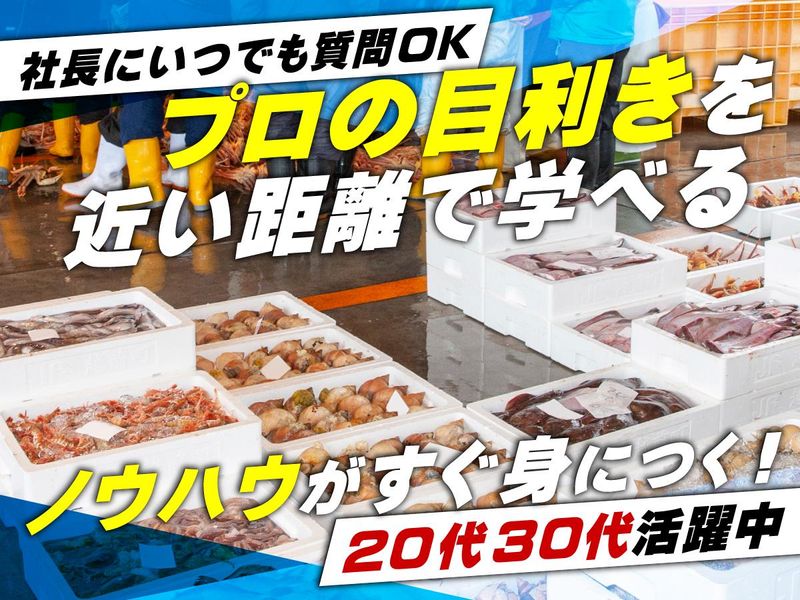 仕事内容 \\20~30代の若手活躍中// ✅未経験歓迎!教育体制充実 ✅5年目で年収1000万円超を目指せる! ✅年間休日112日 ✅残業月平均10時間 豊洲市場でマグロやウニなど、 セリによる仕入れ、解体加工、 販売を行います。 日々の仕事を通して、 国内外の飲食店・寿司店など “食のプロ”へ商品が流れていくため、 日本の食文化を支えている実感を 持ちながら働ける環境です。 仕入れ・加工・販売を通じて、 一生使える専門知識が身につきます。 <具体的な仕事内容> ✅ウニ・マグロのセリによる仕入れ ✅マグロの解体加工 ✅ホテルや飲食店への販売・営業をお任せします。 ※仕入れ・加工などの現場作業がメイン。 空いた時間で週2~3回程度、営業活動も行います。 【1日の流れ】  ̄ ̄ ̄ ̄ ̄ ̄ ̄ ̄ ̄ ̄ ̄ ̄ ̄ ̄ ̄ ̄ ̄ ̄ ▼4:30~5:30 当日の作業確認 ▼5:30~6:30 セリによる仕入れ ▼6:30~9:00 解体 ▼9:00~9:15 休憩 ▼9:15~11:00 加工・発送作業 ▼11:00~12:00 営業など ▼12:00~12:45 お昼 ▼12:45~13:30 片付け・翌日の準備 朝は早いですが、その分退勤も早く、 プライベートや家族との時間を 確保しやすい働き方です。 ✅残業もほぼなし ※おおよそ月10時間以内 ◆未経験から育てる教育体制 =============== 魚の知識がゼロでも大丈夫。 先輩が基礎から丁寧に教えるので、 未経験からでも安心してスタートできます。 仕事を通して、「目利き」や「解体技術」 という一生モノの専門スキルを着実に習得。 分からないことはすぐその場で聞ける 環境なので、焦らず成長できます。 ◆評価・収入について ================== 仕事内容の習得度、スキル、 営業成果等に応じて、随時昇給があります。 社長との距離が近く、 どこが売上に繋がっているか、 改善すべきかなどフィードバックが 早い環境のため、 頑張りが評価に直結しやすく、 結果として離職率も低い職場です。 また、昇給は基本給のベースアップが中心。 一度上がれば下がりにくく、 安定した収入につながります。 5年目で年収1000万円超の社員もいます。 ※初任給:月給30万円~ (スキル・前職収入に応じて相談)