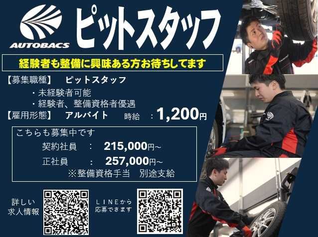 仕事内容 業務拡大|オートバックスでのピットスタッフ|パート・アルバイト|恵庭店 整備未経験・資格がなくてもOK!専門スキルや知識を身に付けませんか? ◎時給1200円~ ◎車の知識がゼロでもしっかりサポートします! ◎お仕事しながら自動車整備士資格の取得が可能(資格手当有※社員登用後) ◎正社員登用制度あり!より安定した収入を目指せます! タイヤ交換やオイル交換や洗車など簡単な整備・メンテナンス タイヤやオイル、バッテリーなど消耗品パーツの販売・接客 アピールポイント 【仕事内容】 ●業務未経験・資格未保持者の方 オイル交換やタイヤ交換、洗車など比較的に簡単な整備サポート業務や、接客・販売をしながら仕事を覚えていただきます。 ●ある程度の経験・知識をお持ちの方 技量レベルに応じて車検や各種整備に携わっていただくことも可能です。 知識・技量に見合わない整備や販売をお任せすることは一切ございませんのでご安心ください。 【やりがい】 ・様々な車種の整備ができるので専門知識や技術が身に付けられます。 ・将来、自動車整備士資格や自動車検査員資格などの取得を目指し仕事の幅を広げていくことも可能です。資格取得もしっかりサポートいたします!(社員登用後資格手当あり) 【職場環境】 オートバックス各店舗のピット作業場には常に5~10人以上のスタッフが在籍しています。スタッフ間の風通しも良く、気兼ねなく相談できる体制を整えています!国家有資格者も多数いますので、沢山の知識と技術を学ぶことができますよ。 「クルマの整備ってどうなんだろう?少し興味がある」という方から「将来、自動車整備士資格を取得して一流のメカニックになりたい!」と強い志のある方まで、お一人おひとりのレベルに応じた育成プログラムで丁寧にご指導いたします。 ___________________________________ 【LINEでの応募はこちらから!】 当社を友達追加をしていただくことで、「応募」となります。 その後トークルームで、どの求人(職種・店舗・雇用形態)をご覧になったかをお送りください。求人についての問い合わせも、LINEをご活用ください!