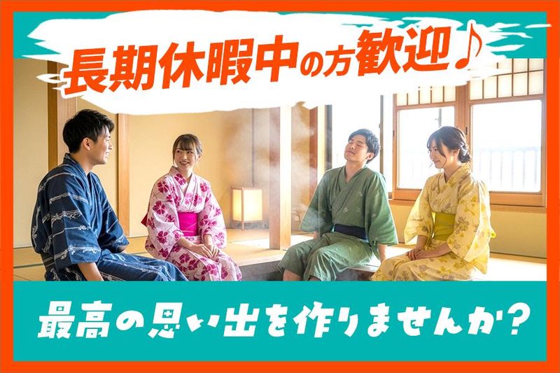 求めている人材 【歓迎条件】 ・未経験者歓迎 ・ブランク歓迎 ・経験者歓迎 ・学歴不問、資格不問、経験不問 ・主婦・主夫歓迎 ・フリーター歓迎 ・大学生活躍中 【こんな方にオススメ】 ・都会から地方へ環境を変えてみたい方 ・地域活性化/地方創生に興味がある方 ・異業種出身でも活躍できるお仕事がしたい方 ・就職活動に役立つガクチカに繋がることをしたい方 ・日頃の生活から離れ、遠方でのお仕事をしてみたい方 ・旅館やホテルなどの施設内でのお仕事に興味がある方 ・リゾートバイトに興味がある ・接客や販売の仕事がしたい ・しっかり働いて高収入を目指したい ・住み込みの仕事を探している ・遊びも仕事も楽しみたい