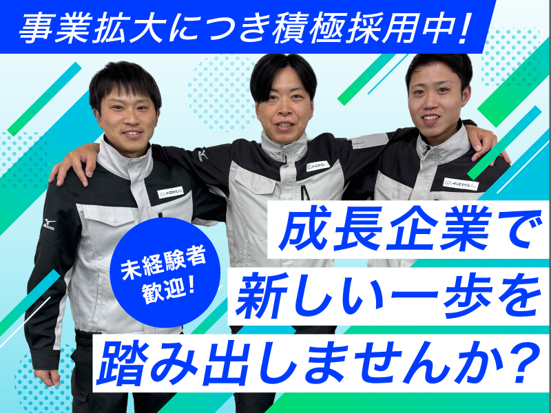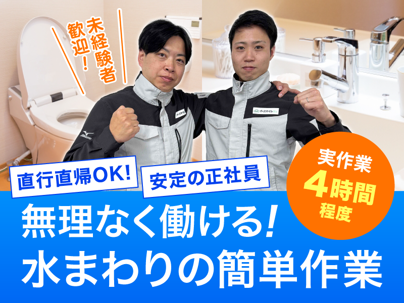 アピールポイント: <イースマイルBizが選ばれるPOINT> ・ 3つの安定基盤 1.生活に欠かせない水道インフラで長く働ける。 2.全国展開で業界トップクラスの実績あり。 3.自分自身で手に職をつけて将来も安心。 ・ スタッフの8割が未経験スタート 1ヶ月の研修があるので事前のスキルは不要!年収600~700万円超えの先輩も多数在籍!