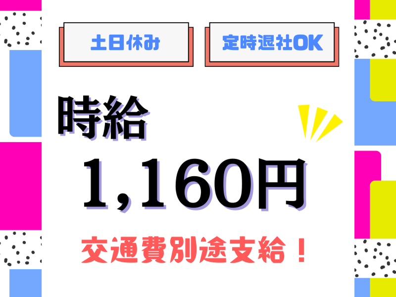 時給1,160円以上 給与: <月収例> 19万2,927円程度 (時給1,160円 × 7.92h × 月21日勤務の場合) ※別途、交通費支給(規定あり)
