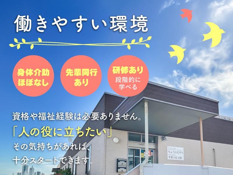 求めている人材 ◆未経験者歓迎 ◆資格不問 ◆人と話すことが苦にならない方 ✧┈┈┈┈┈┈┈┈┈┈┈✧ こんな方大歓迎! ✧┈┈┈┈┈┈┈┈┈┈┈✧ ✔ 人と話すのが好きな方 ✔ 障害のある方のサポートがしたいという思いがある方 ✔ 福祉の仕事に興味がある方 ✔ 子育てと両立しながら働きたい方