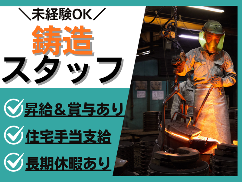 求めている人材 【応募条件】 ⏩60歳未満(例外事由1号・定年のため) ⏩クレーン・フォーク免許あれば尚可 お持ちでない方は資格取得支援で取得可◎ ✅20代~30代の男性活躍中! ✅未経験者歓迎!初心者OK! 【こんな方におすすめ!】 ☘鋳造・鋳物に興味がある方 ☘製造作業の経験を活かしたい方 ☘ライフワークバランスを 充実させたい方 ☘モクモクと作業するのが好きな方 ☘久しぶりにお仕事復帰される方 ☘異業種からの転職希望の方