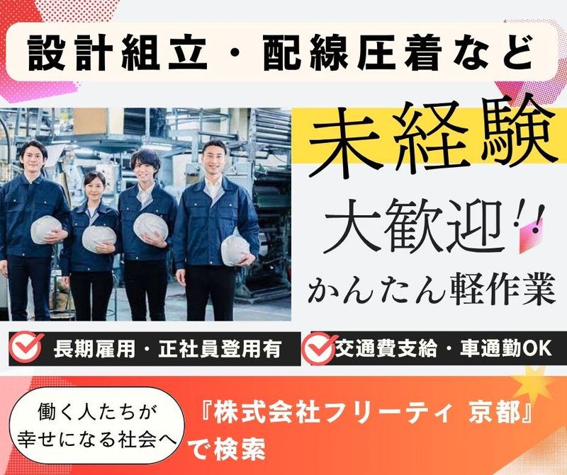 仕事内容 半導体や液晶板製品の簡単な組立てや、経験を積めば設計に基づいた配線の組立圧着作業などをおまかせ✨ 【具体的には】 ✅①組立はねじ締めなど簡単な作業 →半導体・液晶板のネジ締めを行い、順番に組立てていく作業 隣にある物流部署での梱包・ピッキング業務と出荷作業もお手伝い頂きます ✅②設計図に基づいた配線を圧着、組立などの作業 ※経験者優遇 その他、クリーンルームでの機械メンテナンスなどの作業もあり、働きがい、やりがいを求める方にオススメする仕事です✨ まずはできる範囲内でお任せしますので安心してスタートできます! ※初めての方でも研修期間で作業方法はしっかりお伝えしますので 初めての方でもすぐに初められるシンプルで簡単な作業!! == 入社後は == まずは簡単な業務から! 先輩に教えてもらいながら簡単な補助業務から覚えていけばOKです! 先輩の補助業務を通して流れを身に付けていきしょう!