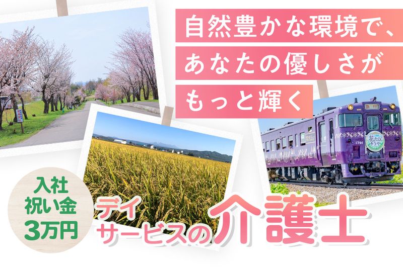 【仕事内容】 \感謝が飛び交う職場で働きませんか♪/ デイサービスで介護職員をパートアルバイト募集! ※初任者研修/実務者研修/介護福祉士/(准)看護師いずれかの資格がある方※ |介護職員の仕事内容 一人ひとりに親身に寄り添い利用者様の暮らしを支えるお仕事 ・運動の提供 ・身体介助(入浴、移動など) ・記録 ・簡単なパソコン業務 ・利用者のご自宅へ送迎 など |マイセルフとは? 四季折々の風景が楽しめる北海道で、デイサービスや老人ホームを運営しています 当社は有給休暇の取得率100%を目指すなど、 働いているスタッフ全員のワークライフバランスを重視◎ 社会福祉事業を通して、"愛"と"尊厳"の輪をまっすぐに広げています - 【介護職員のおすすめPOINT】 - ★週1日~/1日5h~OK ★昇給/各種手当あり ★入社祝い金3万円 ★まかないあり ★昨年の離職率0%! - フルタイム勤務もOK♪ あなたのライフスタイルに合わせて働くことができます◎ |時給について ▷1,100円~1,200円(初任者研修) ▷1,150円~1,200円(実務者研修) ▷1,200円~1,400円(介護福祉士) ▷1,200円~1,300円(准看護師) ▷1,300円~1,600円(看護師) |1日の流れ ▼パターン1 08:30〜09:10始業、送迎業務、受け入れ準備 09:10〜12:10バイタル測定、運動の提供、入浴介助など 12:15〜13:30送迎業務、受け入れ準備 ▼パターン2 12:30~13:30始業、送迎業務、受け入れ準備 13:30〜16:30バイタル測定、運動の提供、入浴介助等 16:30~17:30送迎業務 |職場について 「これができるようになったらいいのに・・」「もっと歩けるようになりたい・・」 そんな利用者様の希望に沿ったサポートを行っているデイサービスです 現在、子育て中の主婦(夫)スタッフが活躍中! デイサービス合同で実施する楽しい社内イベントもあり、風通しの良い職場です♪ ・従業員数:5名 ・男女比:6:4 ・平均年齢:33歳 ======================= \WEB面接OK・見学会開催中/ 直接話を聞きたい方や、応募はまだ…という方でも、 介護職員にご興味持たれましたらご連絡ください♪