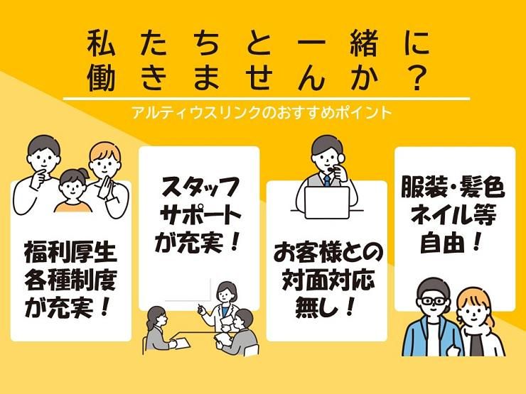 仕事内容 ☆。゜・。。・゜゜・。。・゜。★ オープニングスタッフ大募集❗ 長崎県認証の働きやすさ♬ 地元佐世保で長く働きたい方歓迎✨ ★。゜・。。・゜゜・。。・゜。☆ ✨✨━━━━━━━━━━━━━┓ ECサイトのお問い合わせ対応! メール中心&マニュアル完備だから安心! ┗━━━━━━━━━━━━━✨✨ ✋10:00~17:00!生活リズム◎ ✋メール対応中心で未経験でも安心♪ ✋オープニングスタッフ募集で心強い環境 ✋段階的な研修&管理者の手厚いサポート ✋長崎県Nぴか制度【5つ星】認証企業! *☆*――*☆*――*☆*――*☆* 【お仕事内容】 ECサイトにて 商品購入後のお問い合わせ対応を担当! 生活に身近な内容が中心なので イメージしやすいお仕事です♪ 【お問い合わせ例】 ⏩「交換品はいつ届きますか?」 ⏩「同梱物が入っていなかった」 ⏩「領収書を再発行してもらえますか?」 など ★1件の対応時間は 通話6分、後処理4分程度。 (メール対応がほとんどです♪) ★マニュアルが整備されている環境だから 落ち着いて対応できます! ╭━━━━━━━━━━━━━━━━━━╮ 未経験の方も始めやすい環境です! スタートが同じ仲間もいて安心! ╰━━━━━━━━v━━━━━━━━━╯ ✅座学→ロープレ→OJTと 段階的な研修で丁寧にレクチャー! 管理者の手厚いフォローもあるので 安心して働ける環境です♪ ✅メール対応がほとんどなので、 事務やコールセンター未経験の方も 始めやすいです! 対面のお仕事ではないので おしゃれ自由度も◎ *☆*――*☆*――*☆*――*☆* 面接に参加いただいた方へ 【Amazonギフトカード1000円分】 をプレゼント✨ ※Amazonギフトカードは コードでの支給となります ※本キャンペーンは アルティウスリンク株式会社よる提供です 本キャンペーンについてのお問合せは Amazonではお受けしておりません アルティウスリンクキャンペーン事務局 (0120-926-023)までお願い致します Amazon、Amazon.com.jp およびそれらのロゴは Amazon.com.Inc.または その関連会社の商標です