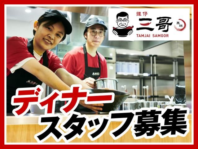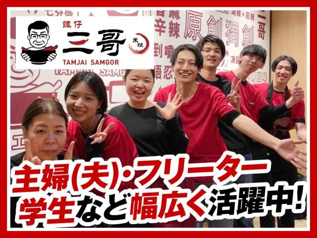 求める人材 ☆高校生OK! ※22時以降は18歳以上 ・飲食店未経験の方歓迎 ・初バイトの方も歓迎 ・ブランクがあっても歓迎 ・20代、30代、40代、50代、60代、 学生、主婦・主夫、フリーター、中高年、シニアもみんな活躍中 ☆友達同士の応募もOK! ☆様々な国の方がご来店されたり、スタッフとしても活躍中♪ 語学力・コミュニケーション力が身につきます◎ この求人のポイント 香港で大人気のスープヌードル店でスタッフ大募集!! □未経験歓迎! □バイトデビューも丁寧にサポート! □長期で安定して働けます! □有休あります!昇給あります! 麺好きはもちろん、食べることが大好きな方、新しいことにチャレンジしたい方、大歓迎です。 短時間(1日4時間~)からOK! ※AC Nielsen HK Brand Index Tracking 2021 顧客満足度No.1 譚仔三哥(タムジャイサムゴー)は香港で人気のスープヌードル店! お米と水だけで作ったもちもちプリプリな麺の米線(ミーシェン)とスープにはたくさんのこだわりがあります! スープの種類、辛さ、トッピングをお客さまに選んでいただいて、オリジナルの1杯をお届けします◎ ■ライフスタイルに合わせてお仕事しませんか。 ■通勤も安心の交通費支給あり! うれしい1食100円のまかないなど充実の待遇をご用意しています。 皆仲が良く活気があり、楽しい職場です! 特徴 フリーター活躍中 / 学生 / 主婦(夫)活躍中 / 中高年活躍中 様々な経験をお持ちの方が活躍中 コンビニ/スーパー/アパレル販売などのレジ・接客販売 ファミレス/レストラン/居酒屋/カフェなど アルバイトやパートがはじめてという方も大歓迎 ブランド説明 譚仔三哥(タムジャイサムゴー)は香港で人気のスープヌードル店。 お米と水だけで作ったもちもちプリプリな麺の米線(ミーシェン)と6種類のスープにはたくさんのこだわりがあります。 スープの種類、辛さ、トッピングをお客さまに選んでいただいて、オリジナルの1杯をお届けします。
