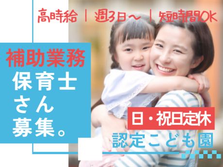 \保育補助/高時給!月収26万円以上可能|週3日勤務~|短時間相談OK|日祝休み|土曜入れる方優遇